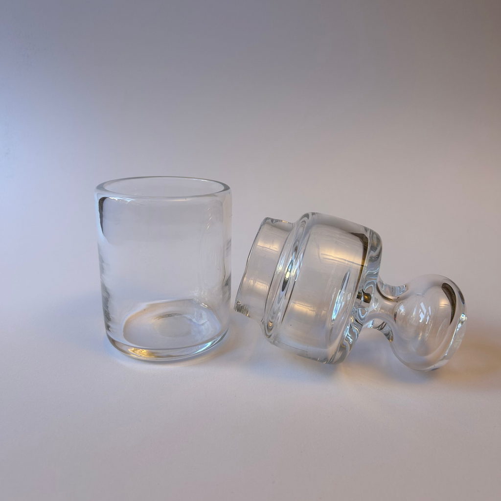Handblåst burk med lock.