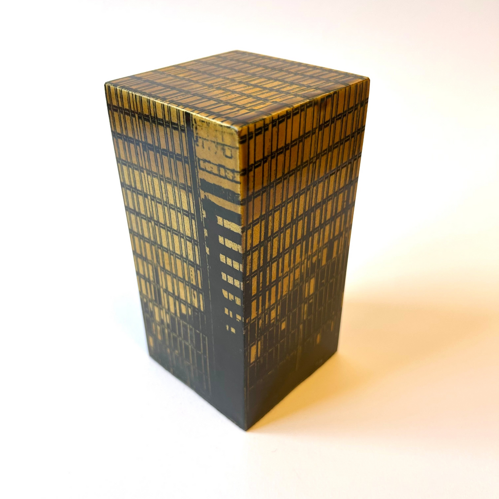Skulptur i stengods med screentryckt dekor, höjd 16 cm bredd 8,5 cm.