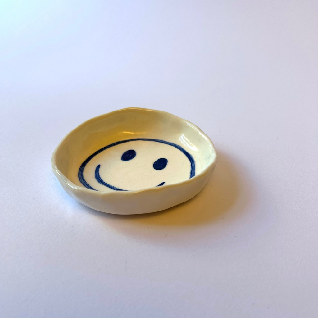 Litet fat i porslin med handmålad dekor.